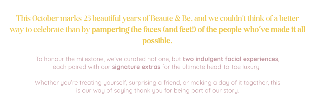 Our 25th birthday facials are here for a short time only. Treat yourself, gift a friend, or both!