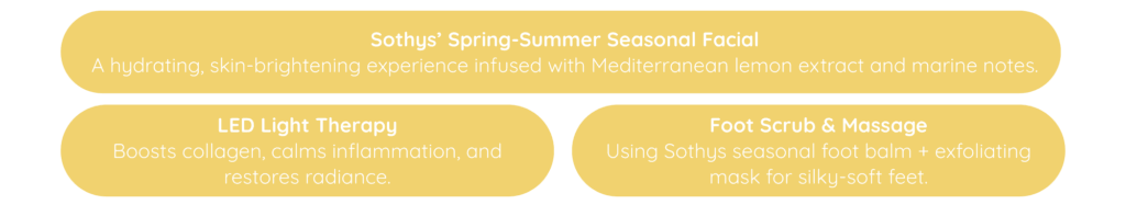 If your skin is thirstier than you’d like to admit, our Sothys Hydra4 Facial delivers six indulgent phases of plumping hydration, complete with exclusive Digi-Esthétique® massage techniques. You’ll float out feeling hydrated, balanced, and utterly restored.